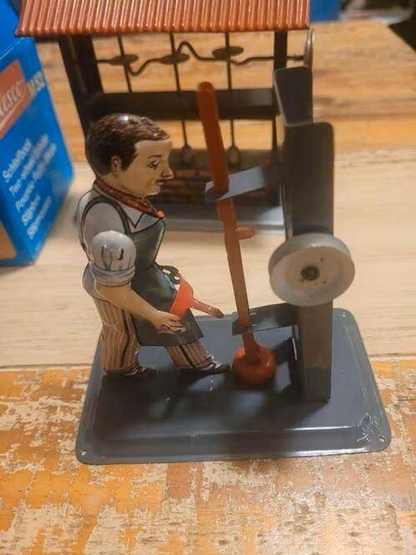 3 Wilesco Aandrijfmodellen voor model stoommachine:SlijpsteenHamerwerkHamerwerk met arbeiderVan de laatste zit een armpje los, eenvoudig te herstellen met ijzerdraadjeLost te koop; richtprijs € 25 per stuk.