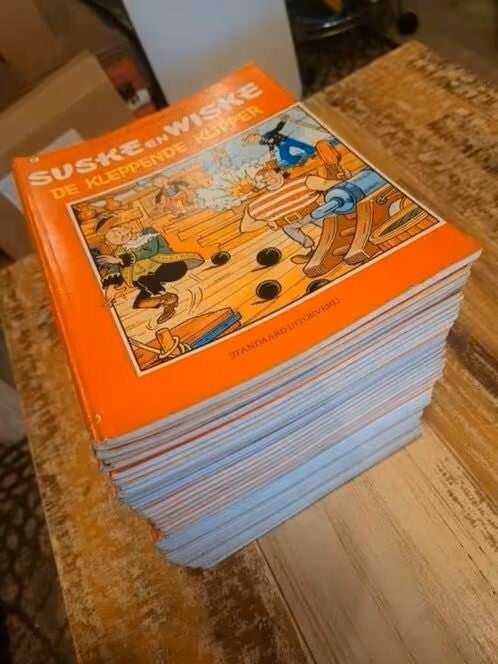 Ruim 100 Suske en Wiske stripboeken€ 1,50 per stuk (minimaal 10 stuks) of doe een bod op alle (dan tel ik ze)Eventuele verzendkosten afhankelijk van aantal.